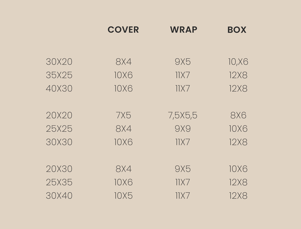 Patch measurements for all products can be found in the table provided. However, please make sure to check the availability of your selected product in that size before ordering.