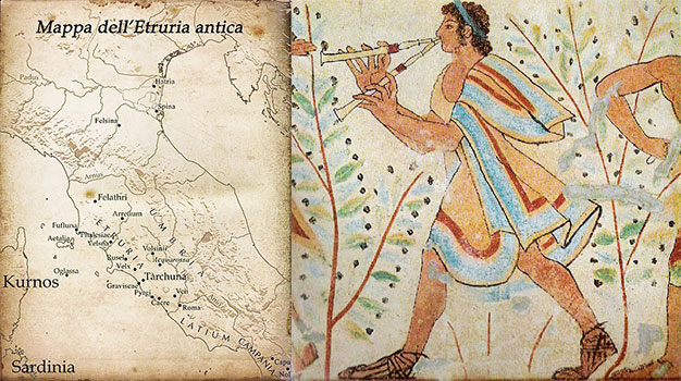 Etrusco comes from Etruria, an ancient country in Italian Peninsula, located between the Arno and Tiber rivers, corresponding to modern day Tuscany. This still mysterious civilization laid the roots of the Roman Empire.