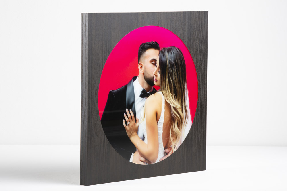 The aluminum base for Metal PRO offers a choice between a White base for enhanced color fidelity and crispness, or the satin effect, where the brushed metal finish is visible through the print, creating a softer appearance and minimizing reflection: