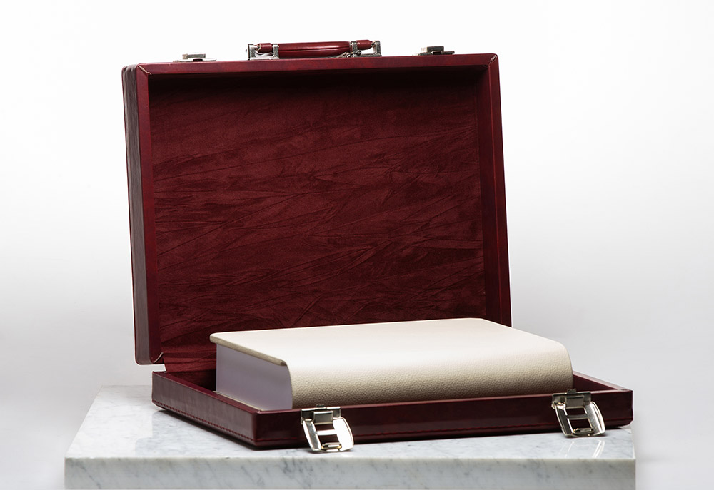Practical and handy, our briefcase protects and at the same time, makes carrying the book easier and safer. It is produced in the same material and color tone of our black, blue or brown leatherette covers, thus guaranteeing elegant combinations. They are available for 8×12” (20x30cm) or bigger albums