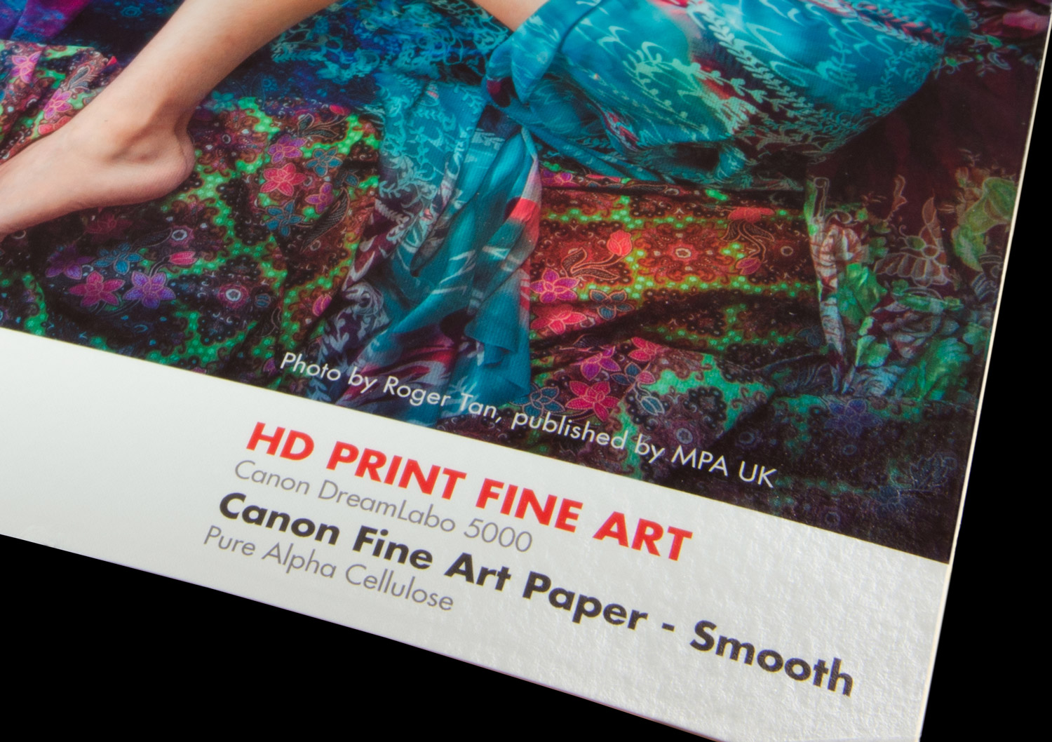 It enables you to reproduce extraordinary detail throughout an image, on our seven color HD Canon Dreamlabo 5000 printing technology. Unprecedented dynamic range, extremely high resolution, deep blacks, plasticity of the skin tones, detailed shadows, vibrant colors and papers of extraordinary finishing. The longevity of these prints is certified at 300 years by the JEITA institute.