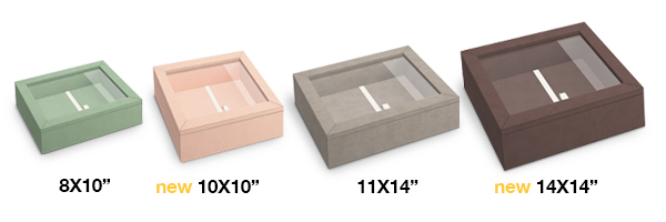 Square, vertical or horizontal, your Reveal Box always fits the typical mat (imperial) such as 8×10″, 10×10″, 11×14″ or 14×14″ (20.3×25.4, 25.4×25.4, 27.9×35.6, 35.6×35.6 cm).