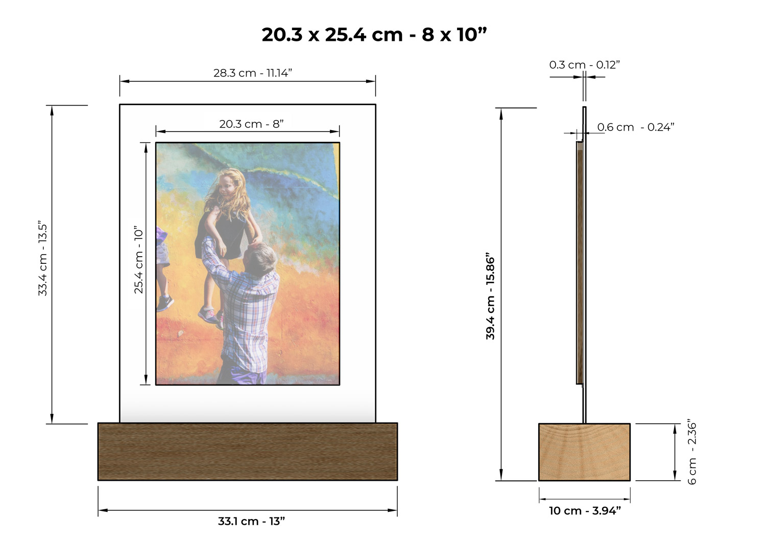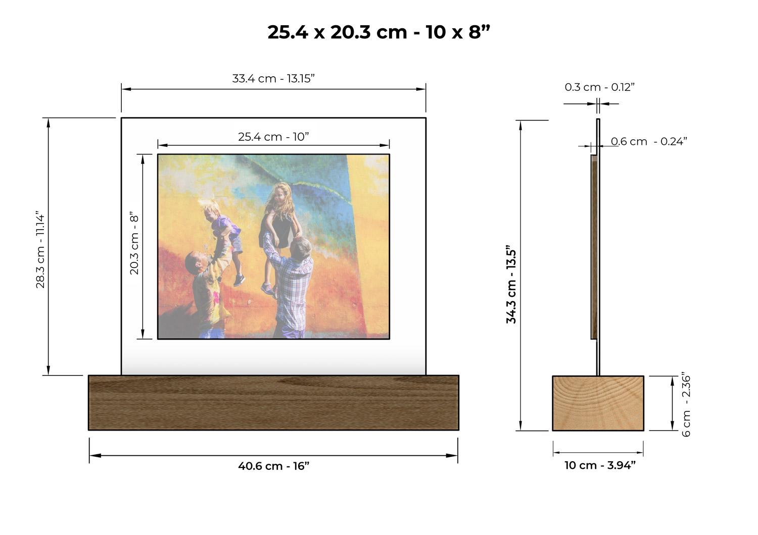 - Includes a wooden fibre base, acrylic panel, printed photo, and wood fibre backing finish.
