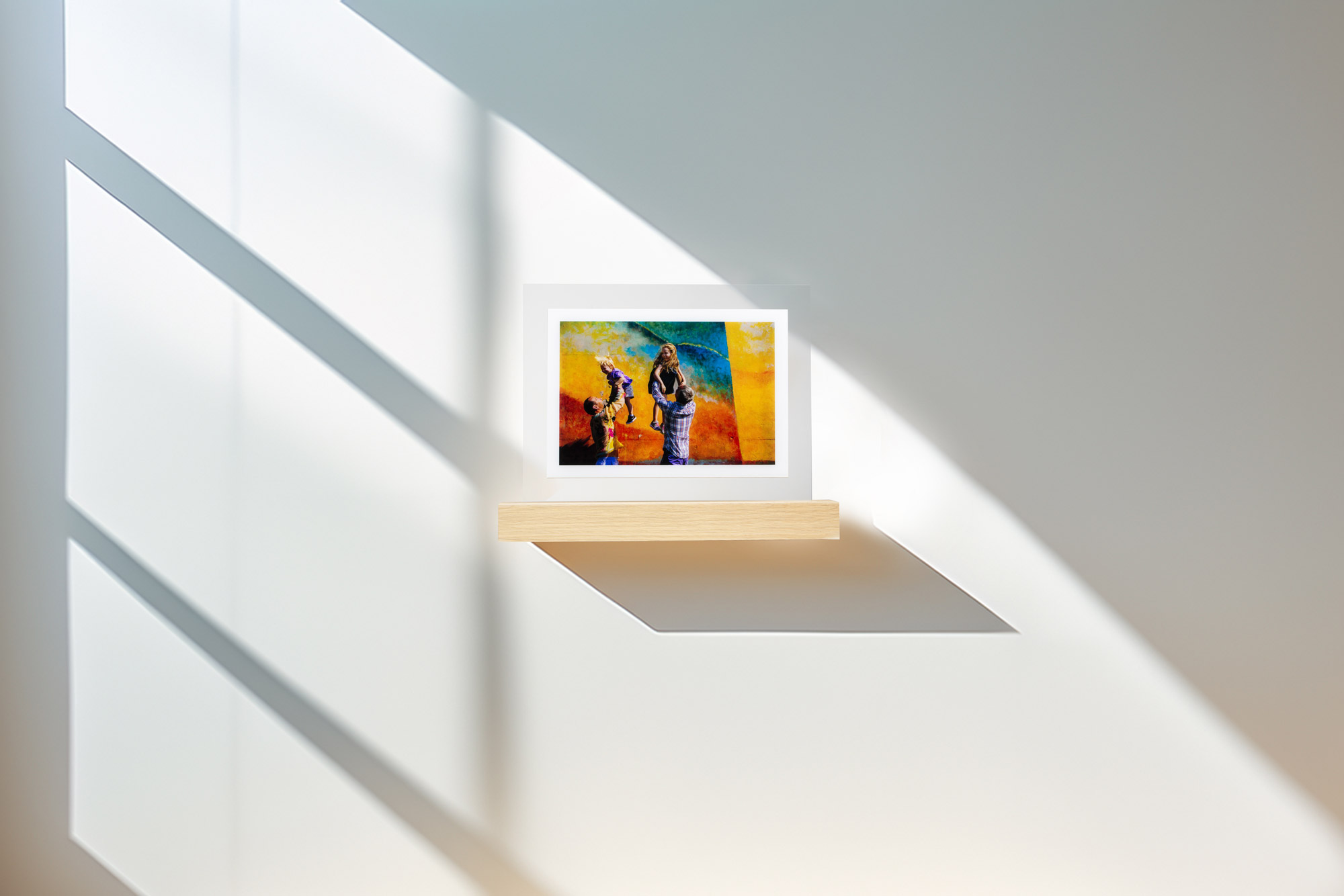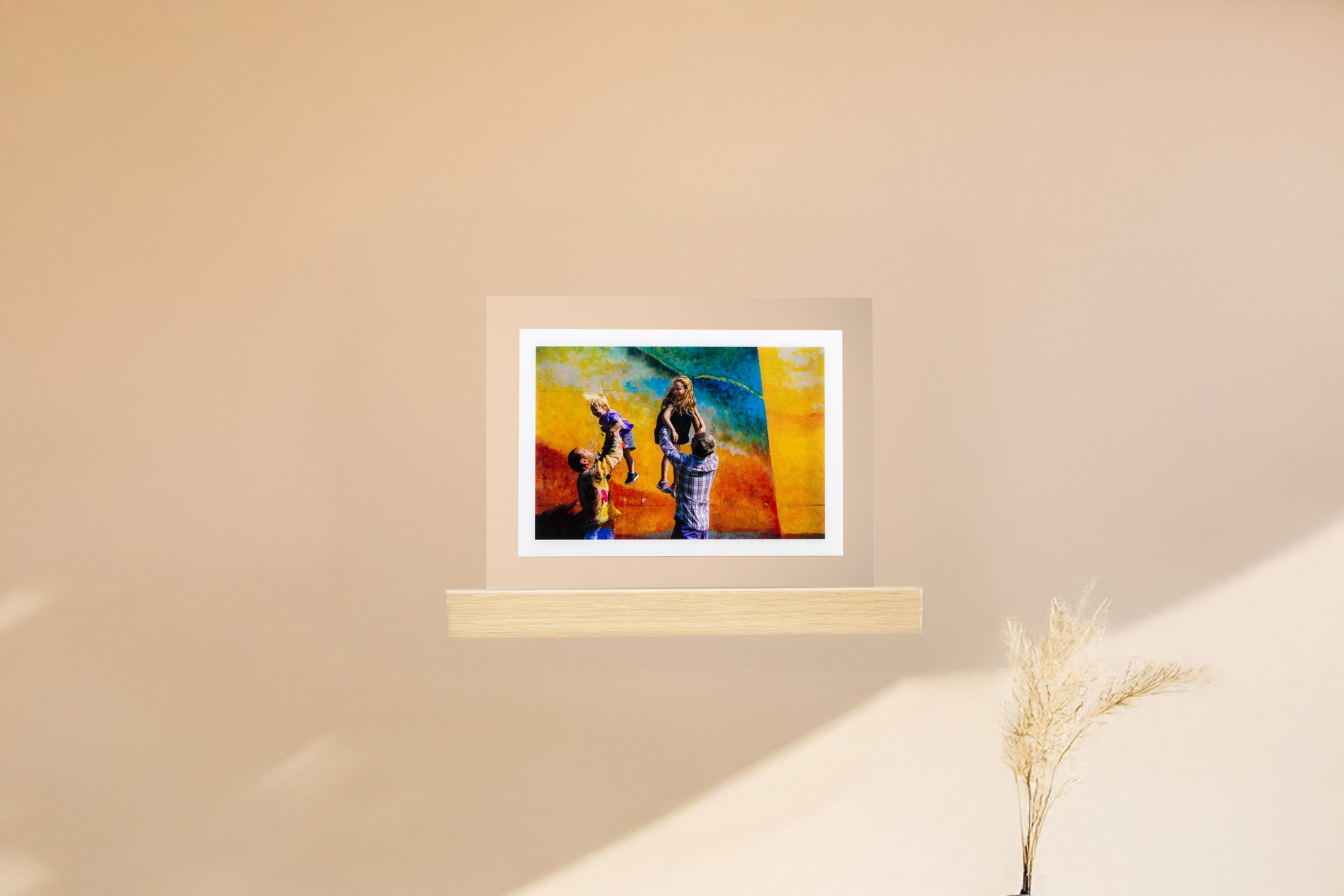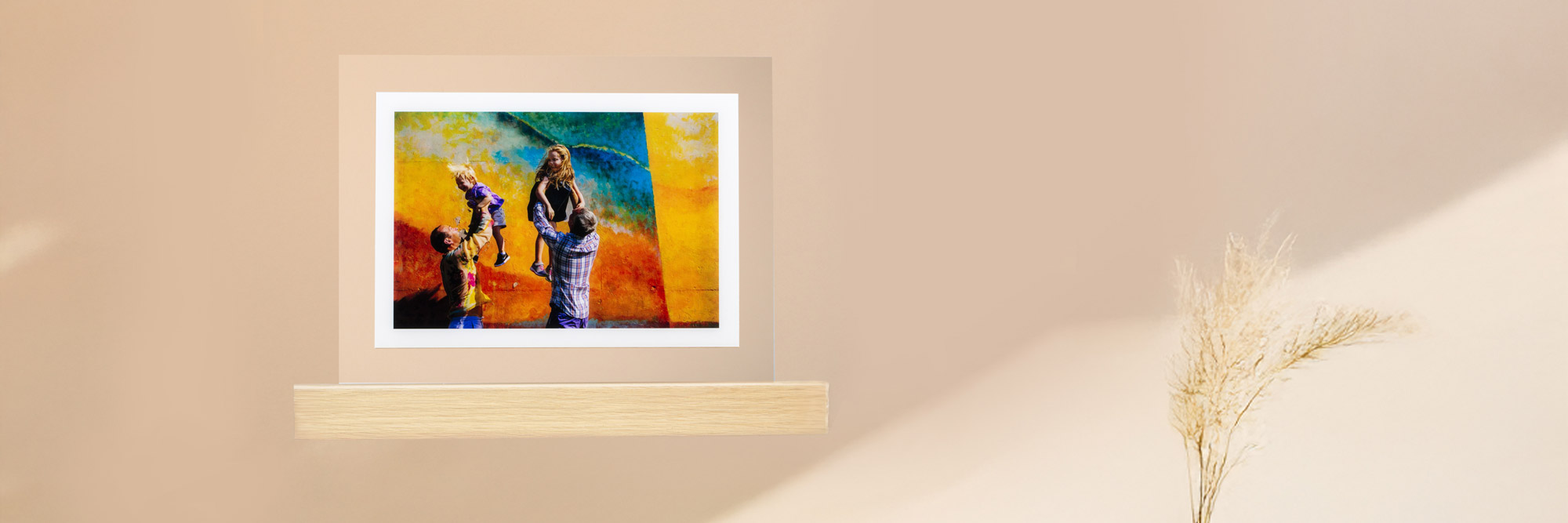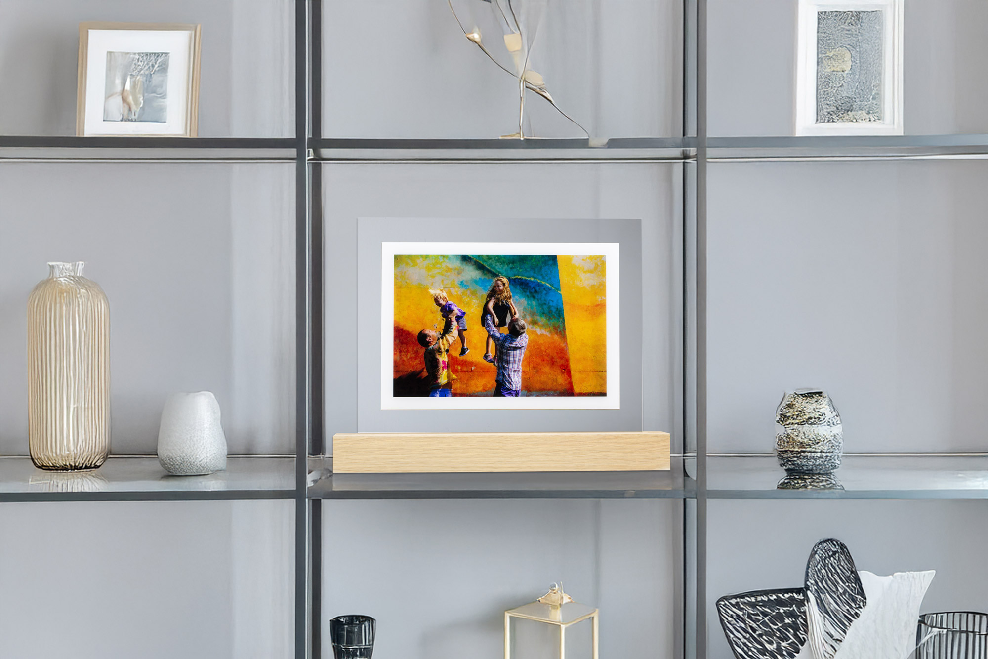 Discover a product that revolutionises the concept of display: a shelf with embedded acrylic print, combining functionality and design. With a solid wooden base and practical hooks for wall mounting, this innovative photo shelf transforms your memories into a true work of art. Elegant and versatile, it adds a touch of personality to any environment, combining the beauty of acrylic with the warmth of wood for a unique visual experience.