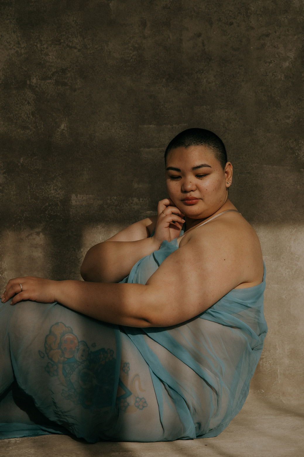 “I work to grant my muses the permission to be fully and naturally themselves without layers to hide behind, without the need for a glamorous makeover or extreme retouching, and also without the pressure to act provocatively. We can be sexy, yes. We are also intelligent, introspective, resilient, strong, funny, powerful, and emotional. I work to help my clients discover and celebrate their confidence. Limiting that expression of confidence to merely sexuality is doing a great disservice to the multitude of characteristics that one is comprised of. This is why I am working to redefine boudoir photography from a style that is traditionally intended to be stereotypically sexual for a very narrowly defined demographic, to an evolved narrative that is more of an artistic expression of the human spirit in its most honest natural form. I encourage a dialogue that emphasizes that everyone is a masterpiece.”